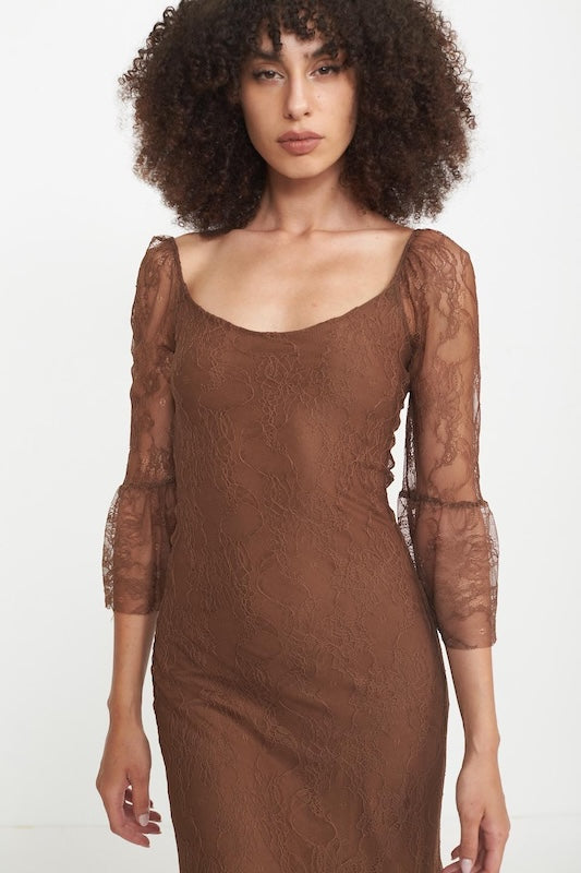 Wrap your figure in sophistication with our delicate “Serenata” Lace Dress. Crafted from exquisite floral lace fabric, this dress embodies a feminine and romantic style. Its sweetheart neckline flatters the bust, while three-quarter sleeves and ruffle details on the cuffs and hem add a distinctive and elegant touch. Featuring a fitted silhouette on top and a slightly flared skirt, this dress is ideal for special events where you want to stand out with grace and distinction. Its lightweight fabric makes it a charming choice for both day and evening celebrations, especially during warm seasons. Add subtle accessories for a refined look or pair it with bolder pieces to express your personality. An essential basic for an elegant and versatile wardrobe.
